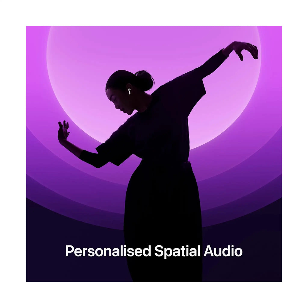 - Transforme a sua experiência sonora com Áudio Espacial personalizado, com rastreamento dinâmico de cabeça que cria um ambiente sonoro envolvente, semelhante ao cinema, para todas as suas necessidades de entretenimento.
